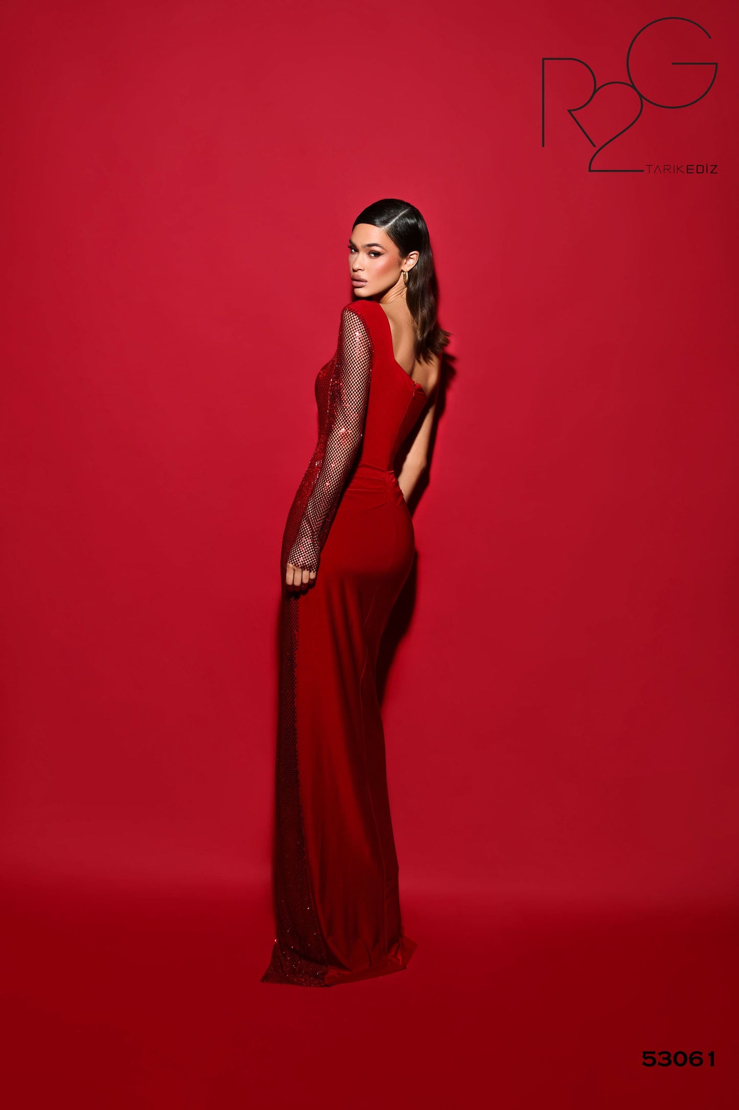 Tarik Ediz 53061 Jersey Fabric One Shoulder Neckline Fitted Long Dress