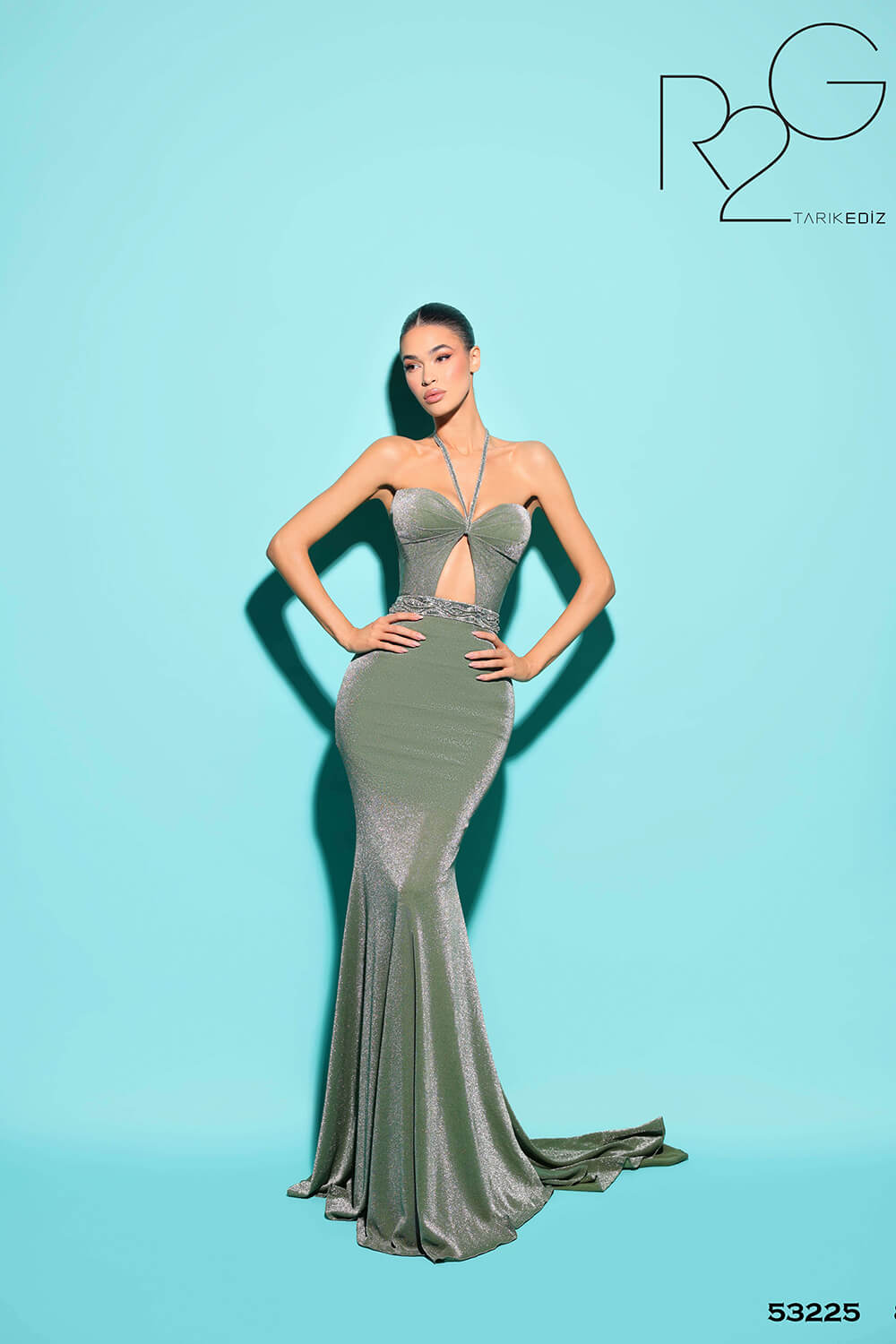 Tarik Ediz 53225 in jersey fabric is a symbol of captivating elegance, promising a memorable presence at proms, formal events, and special occasions.