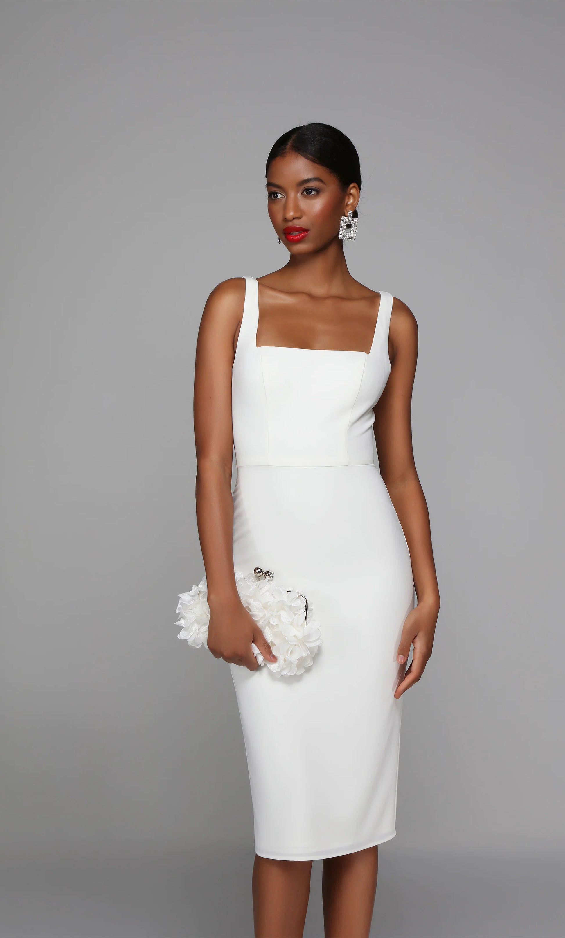 Alyce 70010 Formal Wear, Short, Stretch Georgette, Square Neckline, Straight, V Shaped Back, Back Slit