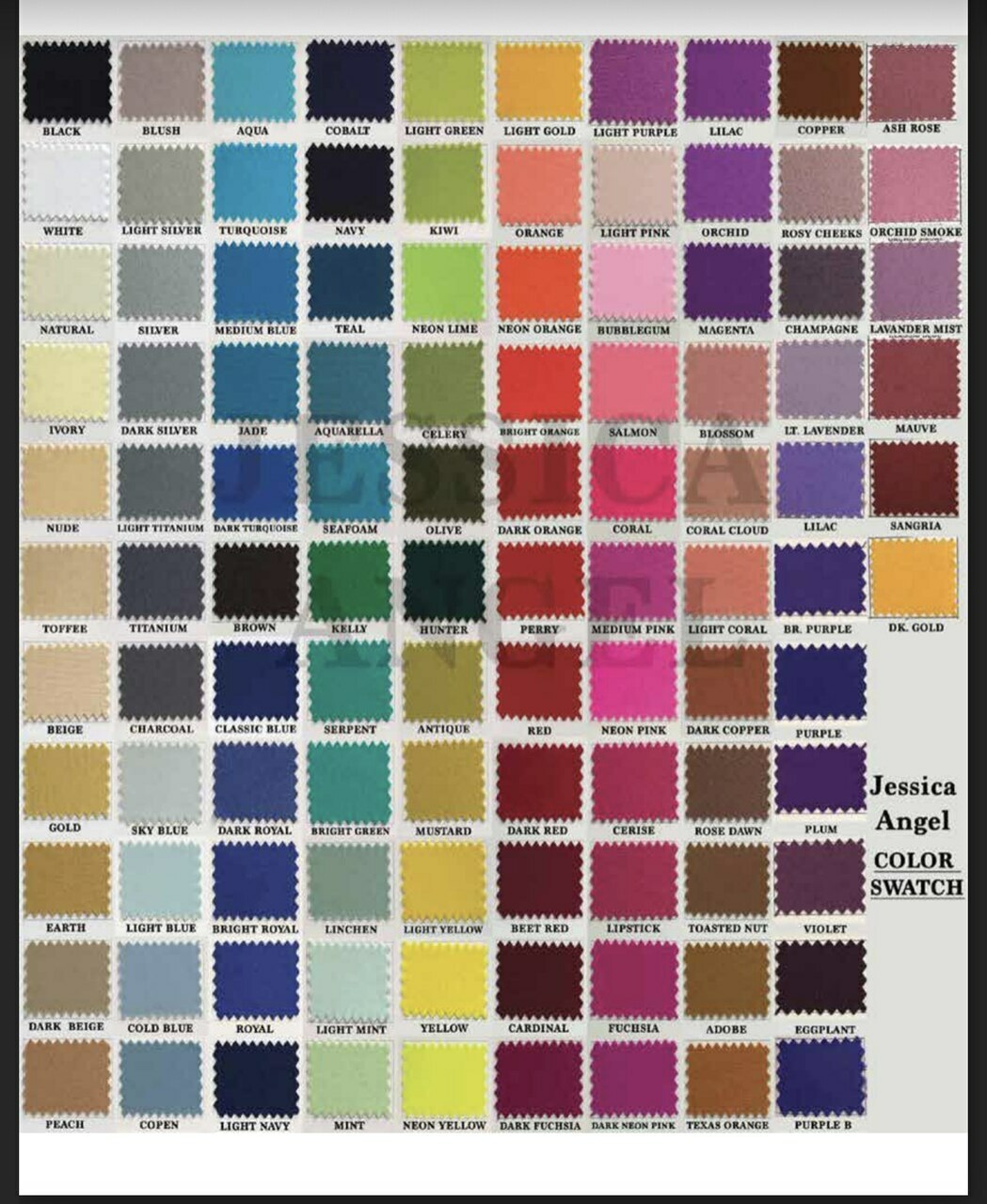 Jessica Angel dresses are made to order from LA, California. Their dresses come in 50 plus colors and In a variety of styles as well as fabrics.