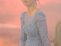 Step into a fairy tale with the exquisite azurite embellished gown. This gorgeous gown features intricate beading and delicate embellishments that give it a whimsical, romantic touch. The stunning layered glitter tulle creates an ethereal effect that will make you feel like a real-life queen. Its belted waistline adds structure to this magical dress, perfect for any dreamy or enchanted occasion. Bring your fairy tale to life in this long sleeve beauty!