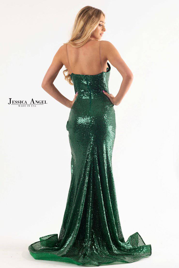 Jessica Angel 610 Sweetheart sleeveless with spaghetti strap, bare back and high leg slit sequin mermaid long dress.