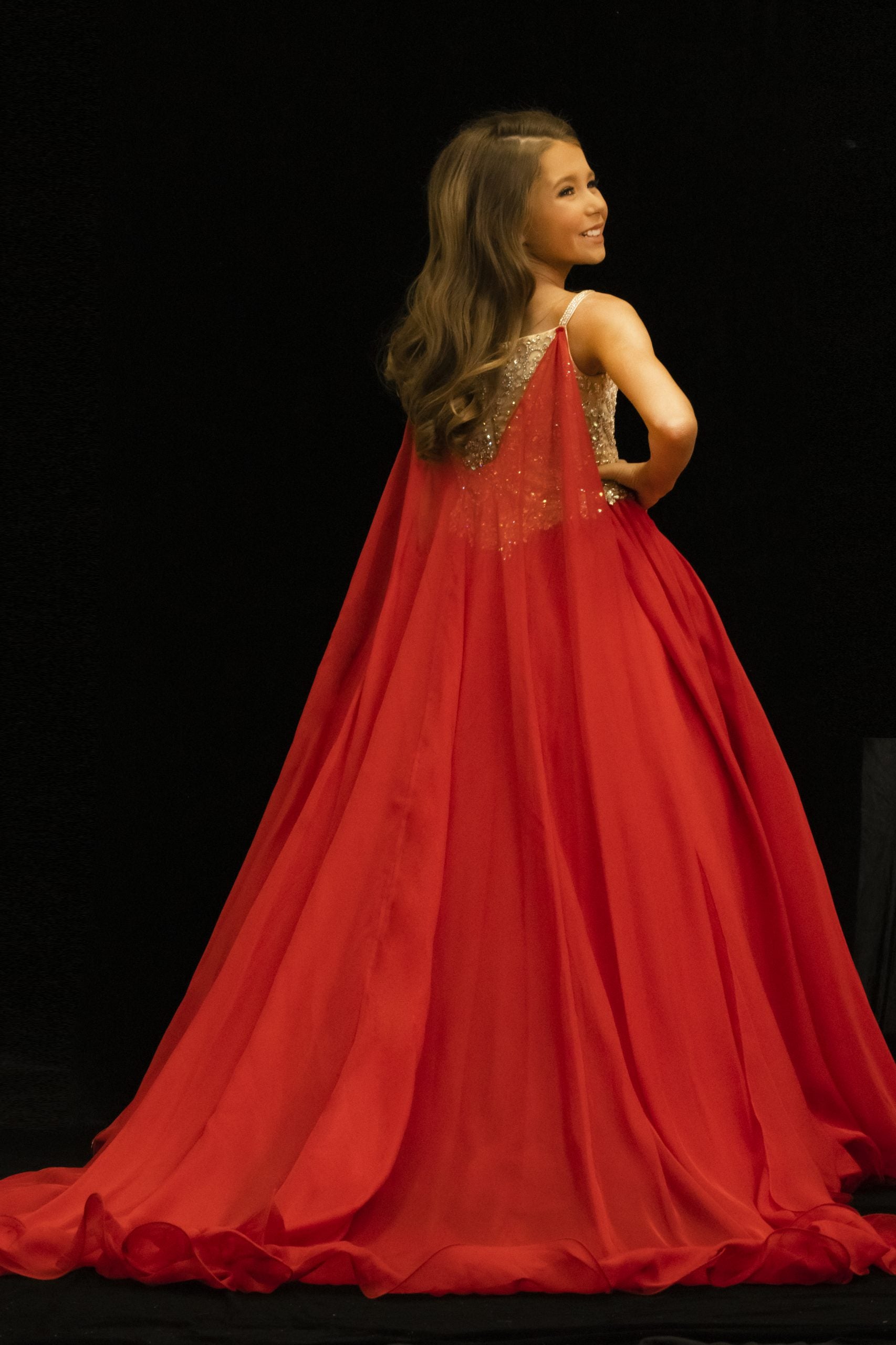 Johnathan Kayne C138 Shine brighter than the rest in this bold ballgown with detachable cape. The chiffon skirt is so full of volume and is complimented by the amazing beadwork on the bodice and detachable sleeves of the gown.