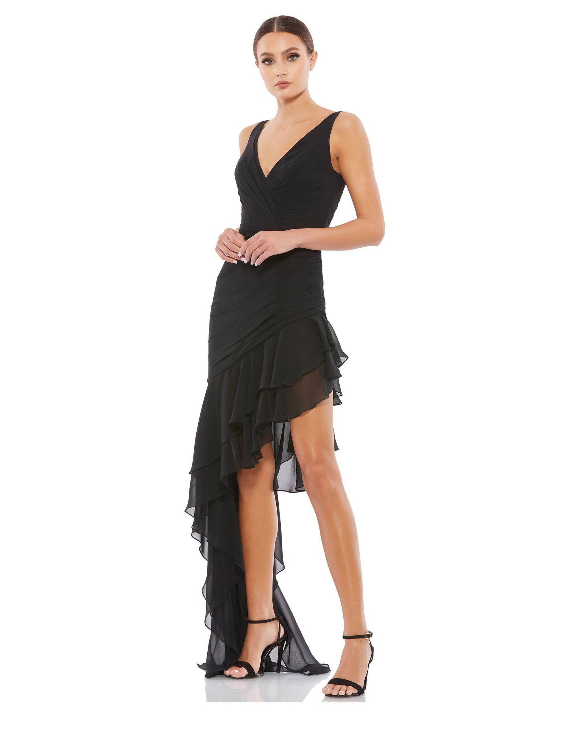 Mac Duggal 49487 white sleeveless high low dress. Also available in: Black & Red