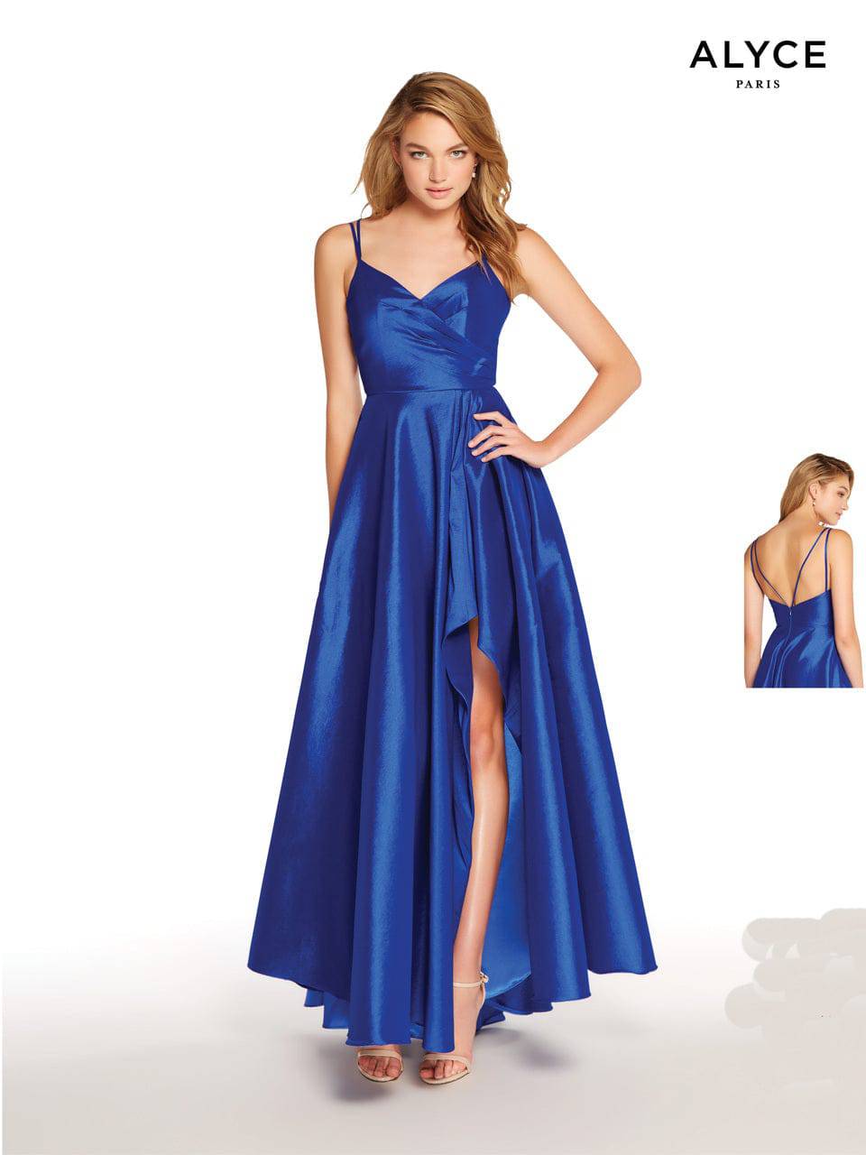 Long dress with V-cut neckline and double spaghetti strap for a flattering cut.