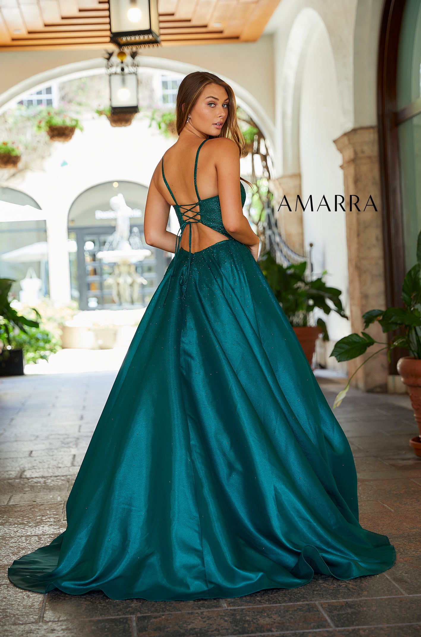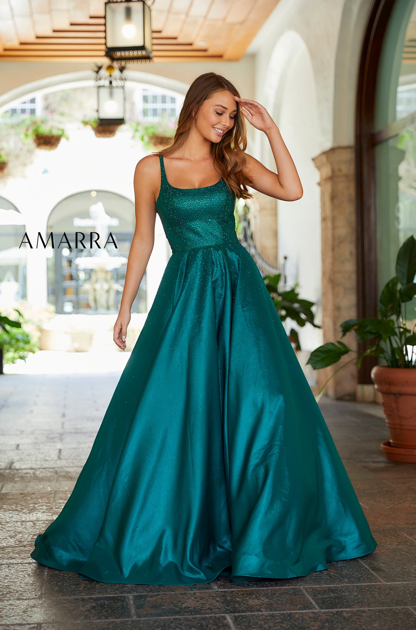 Amarra 87326 shimmering emerald thick straps long dress. Also available in: Fuchsia & Royal Blue