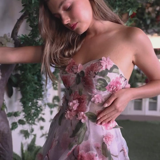 Andrea and Leo A1035 Strapless Organza Ball Gown With Floral Print
