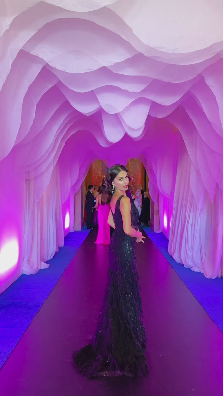 Be the talk of the town in this sultry Chantel Feather Dress! Crafted with a see-through bodice and a luxurious feathery bottom half featuring a long train, this dress is an absolute showstopper for any gala, prom, wedding, or event! Flattering for every body size and type, you'll be looking and feeling hot-hot-hot!