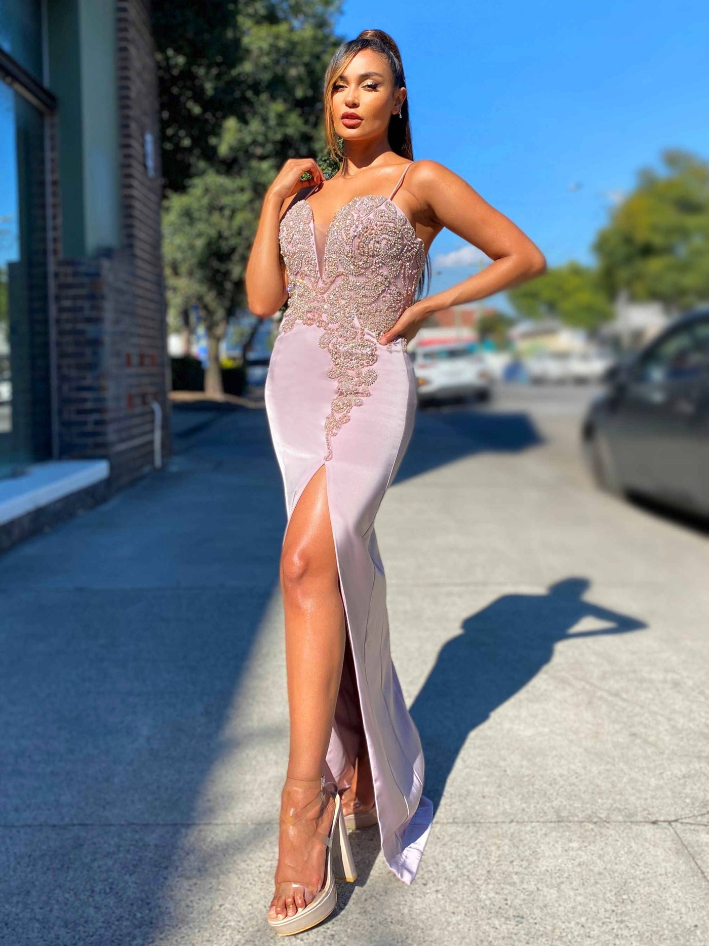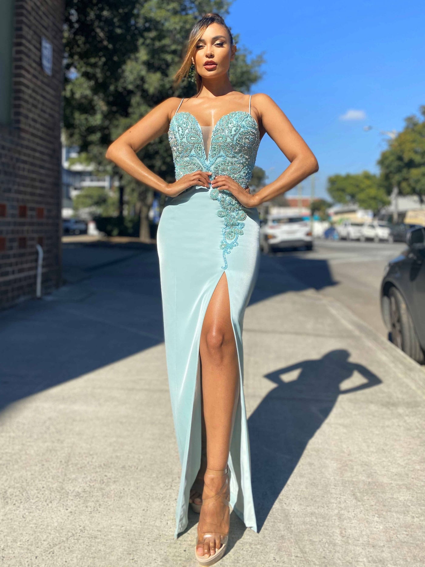 After determining your unique measurements, refer to the dress designer's size chart. Sizes are often different between designers. Size 4 in Mac Duggal, can easily be a size 2 in Sherri Hill! It is extremely important to utilize each designer's size chart, when purchasing multiple dresses! Click here to watch a full tutorial by our team!