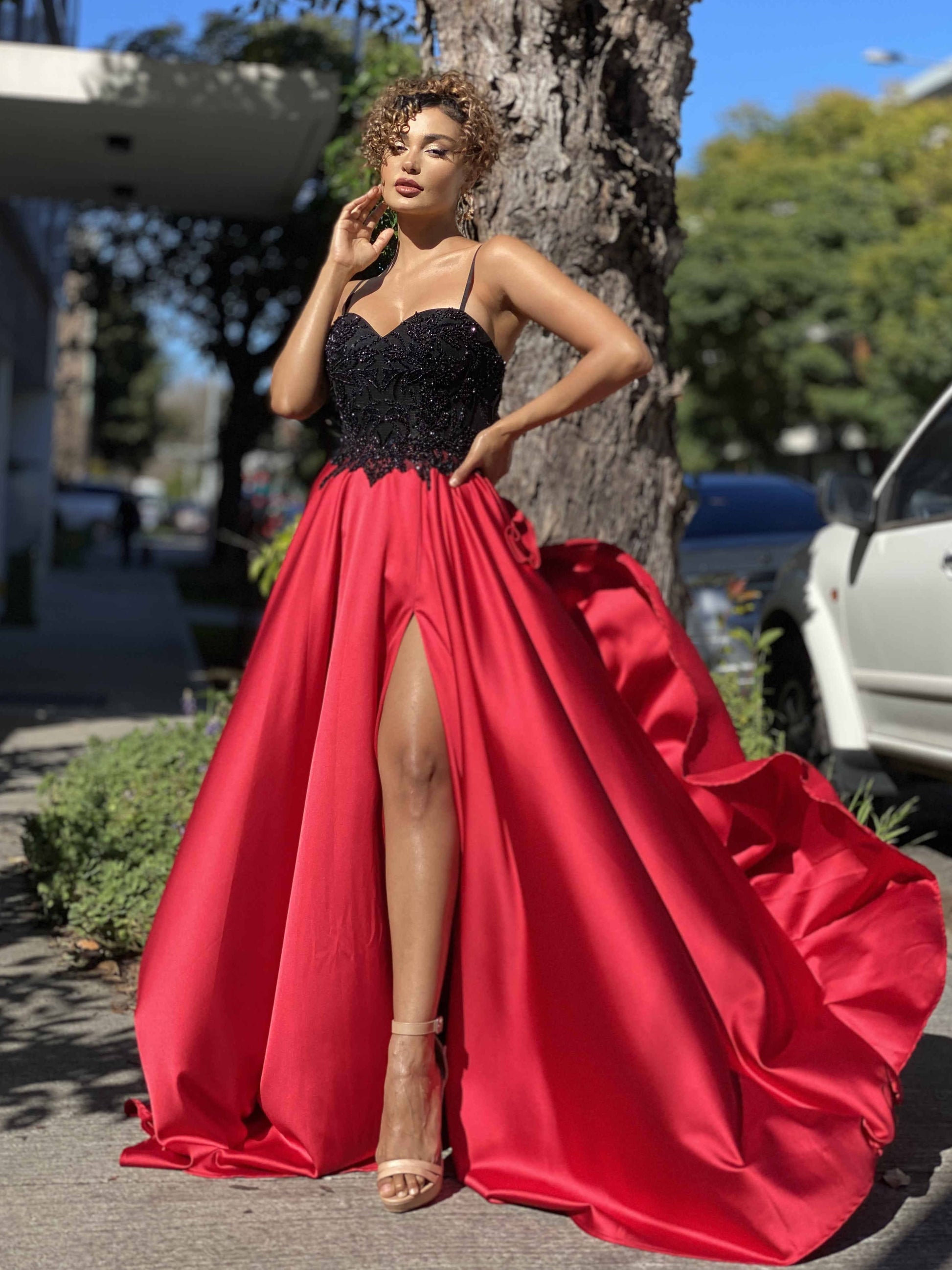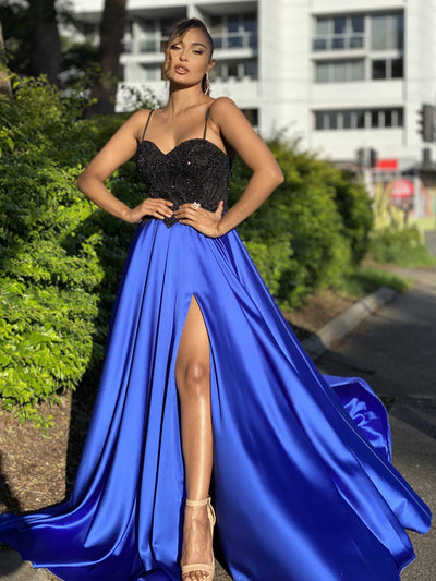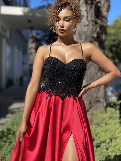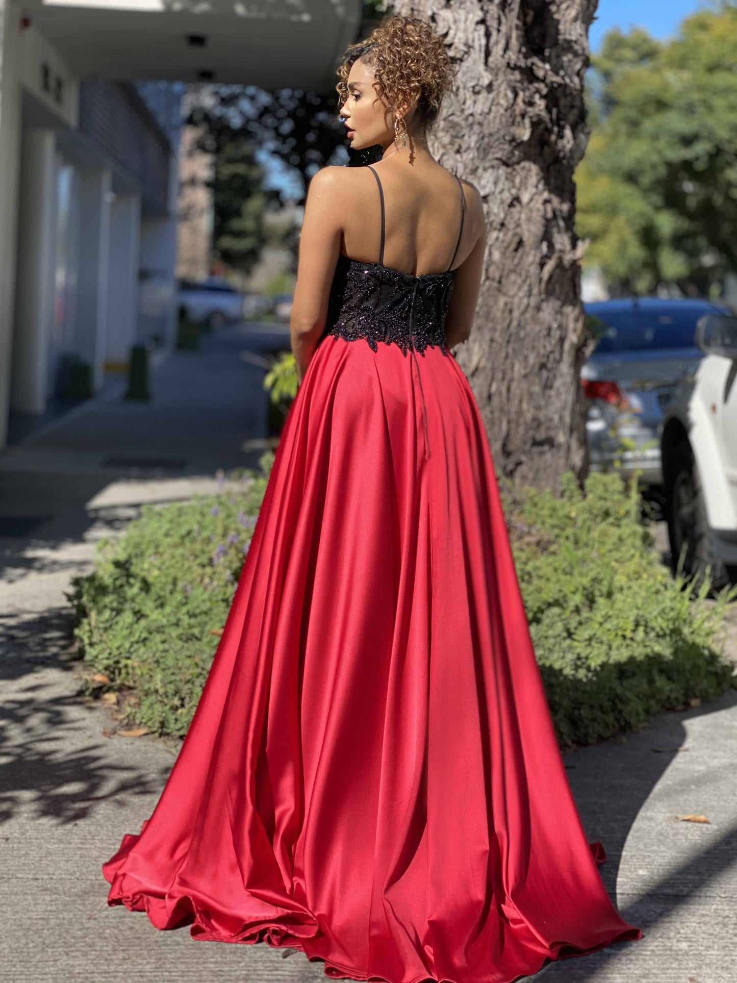 Jadore JX4075 black/green spaghetti strap with sweetheart neckline, padded bustier top with hand-beaded detailing and high split. Also available in: Black/Cobalt & Black/Red