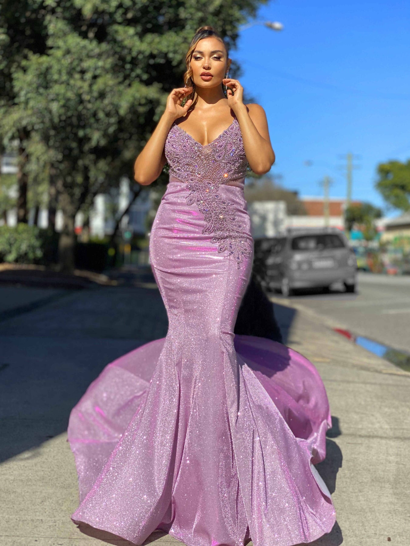 Jadore JX4076 gunmetal embellished sequin long dress with v-neckline, cut out sheer panelling features on the waistline and continues through to the back of the dress. Also available in: Lilac & Musk