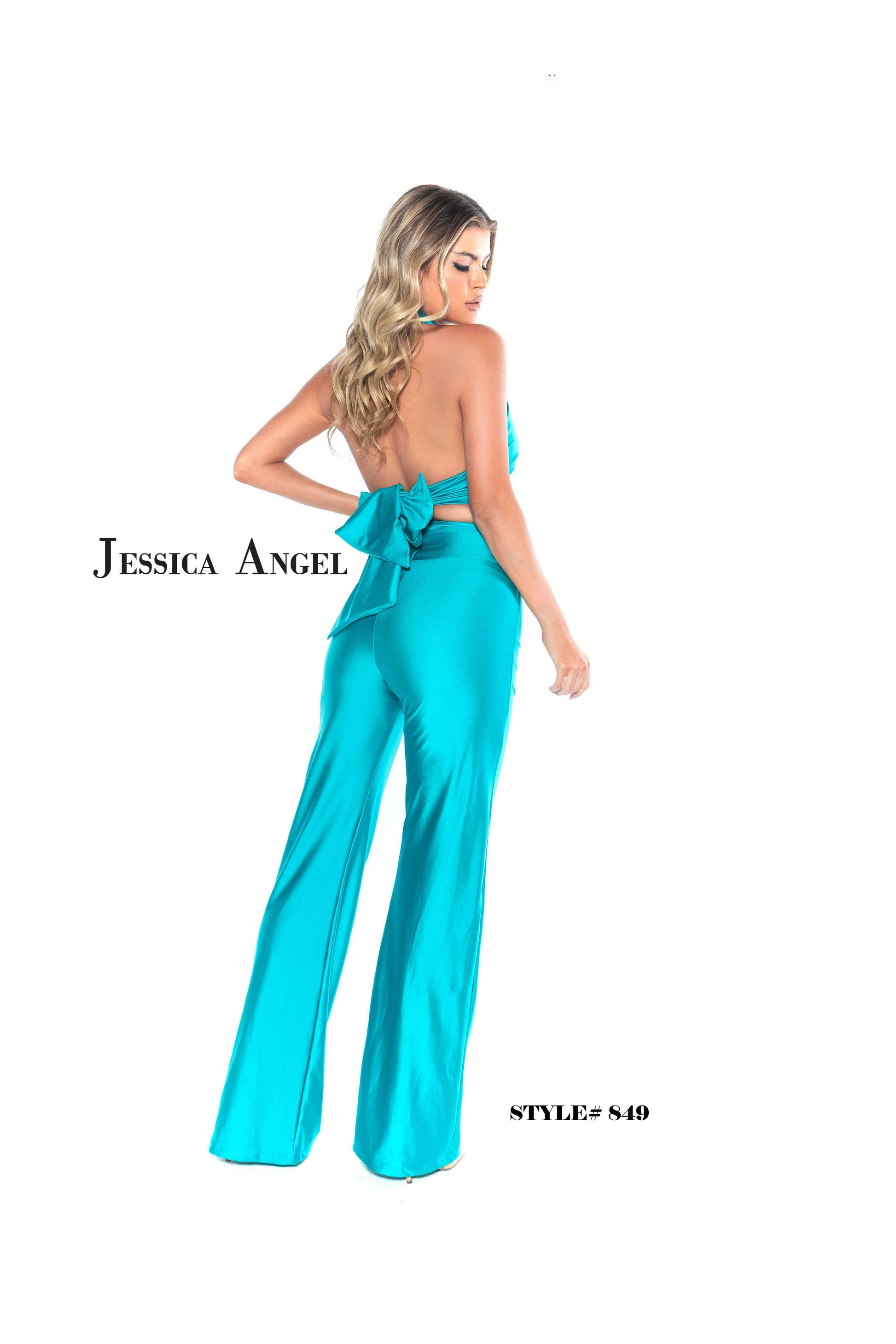 Jessica Angel 849 halter neckline two piece jumpsuit with tie back.