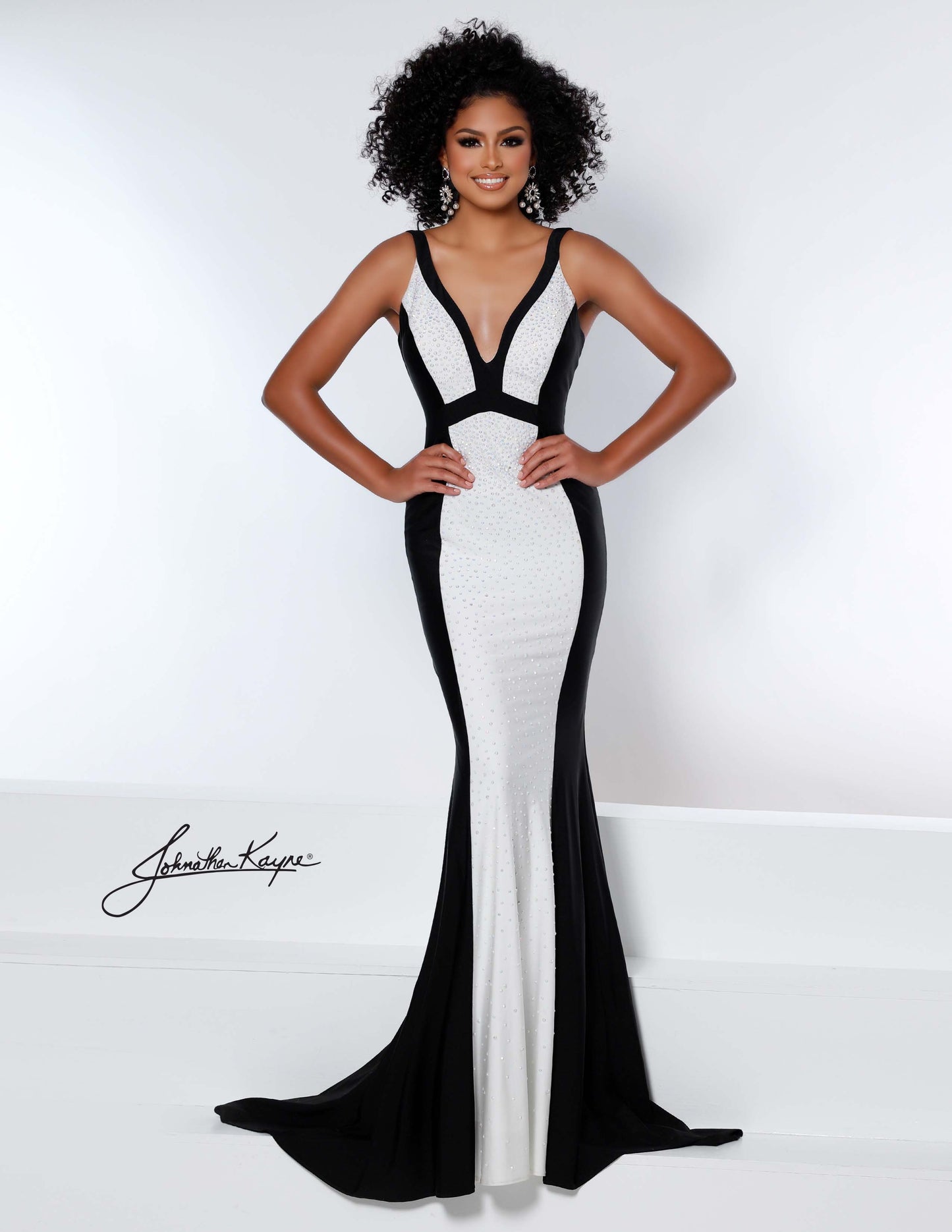 Bring down the house and pump up the style in this color blocked beauty. Our lycra gowns are best-selling for a reason, the black panels at each side are sure to slim the figure and make you feel sexy.