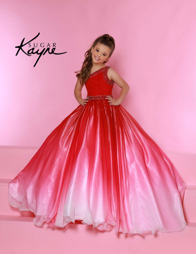 Oh my ombre! This style is breath taking with delicious color combos. The one shoulder style adds a fun flare with beaded trim at the neckline and waist.