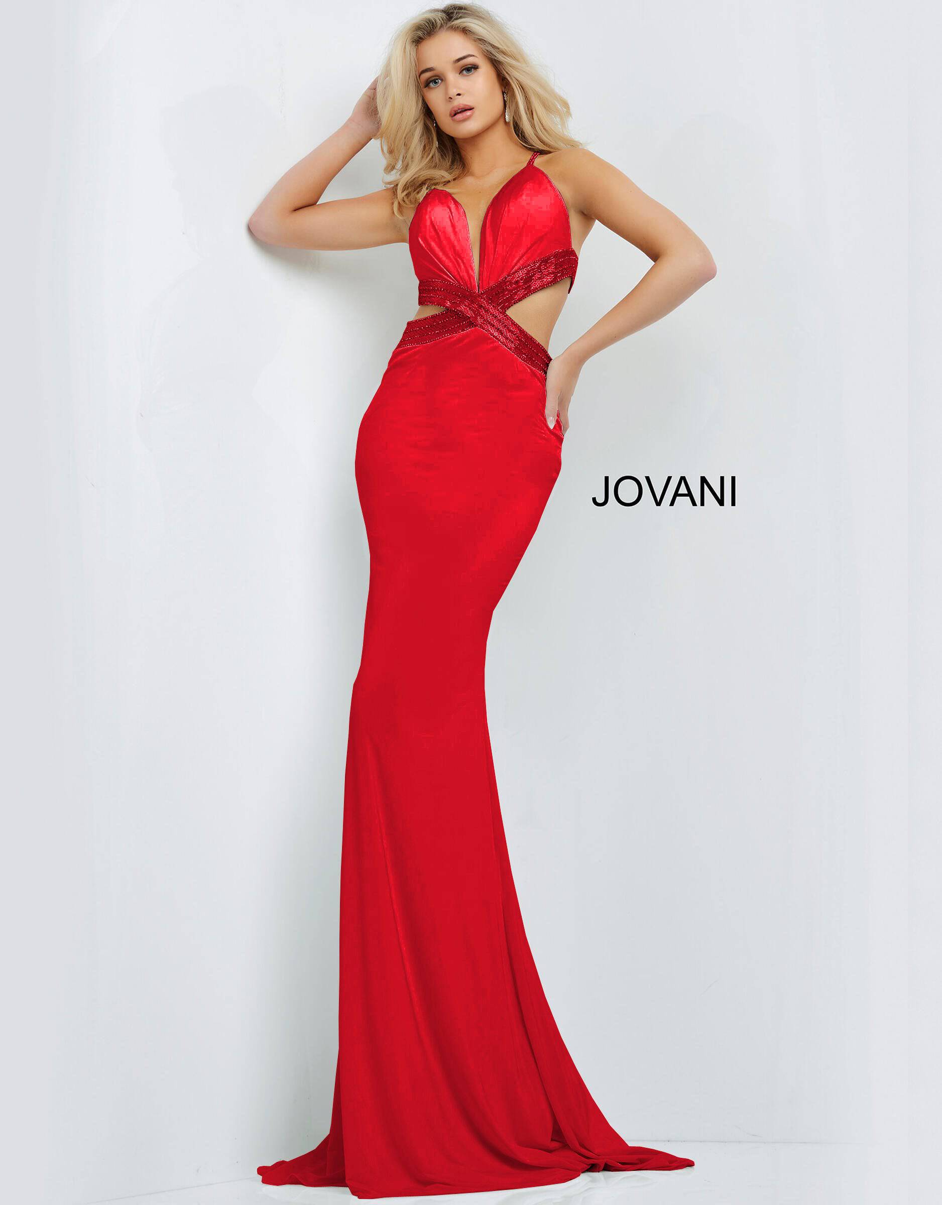 Jovani 03371 Off White Jersey Plunging Neck Prom Dress.