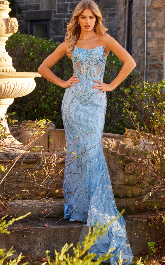 JVN by Jovani JVN23250 Tie Back Embellished Sheath Prom Dress