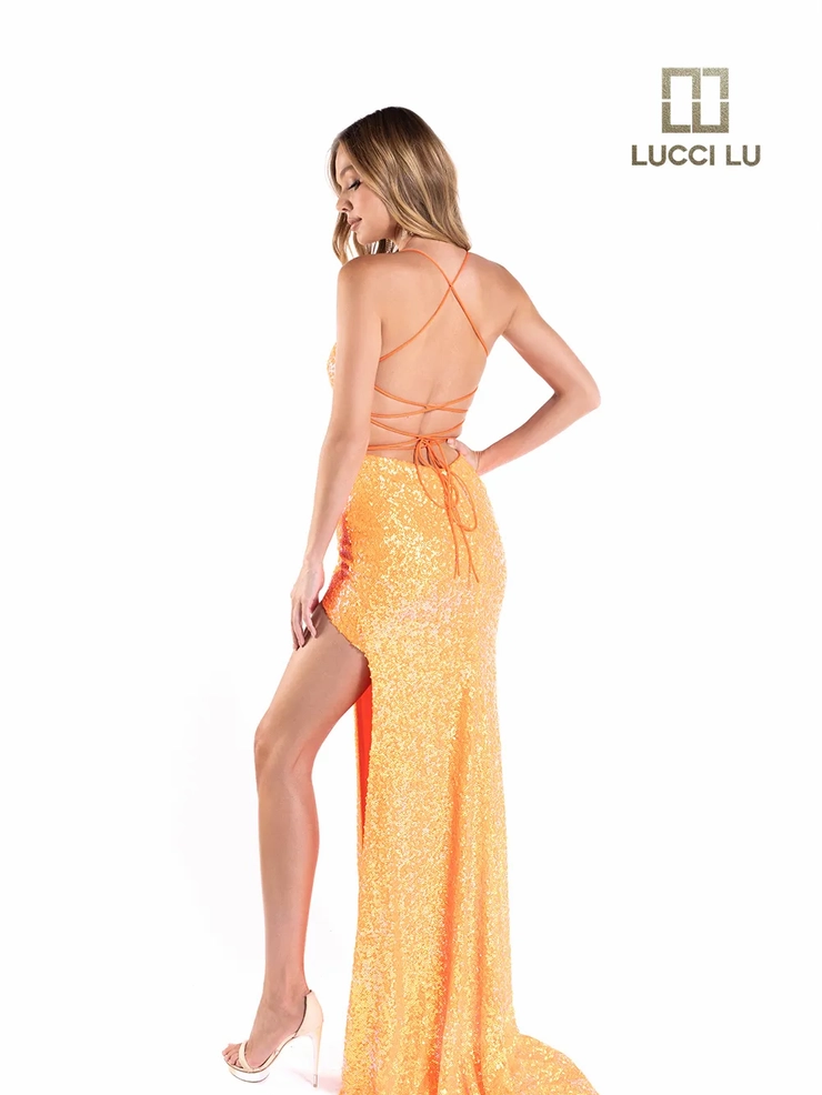 Make a bold and glamorous statement in Lucci Lu Style 1238, a dazzling gown that promises to leave a lasting impression at any evening event or prom.