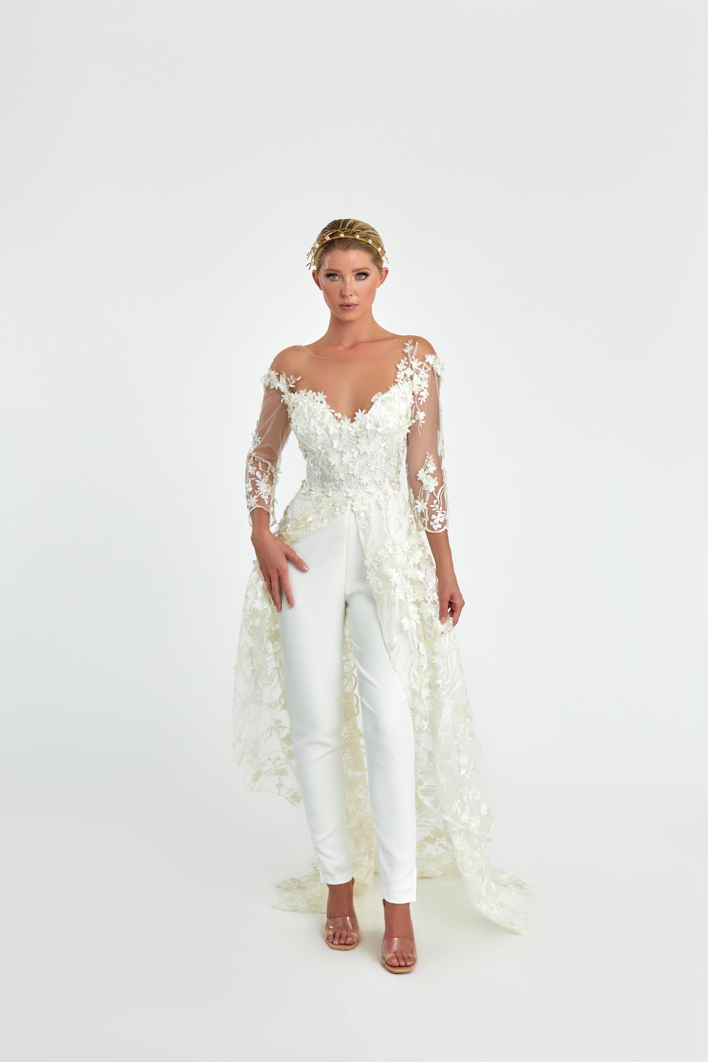 Nicole Bakti 7099 Lace Applique Jump Suit.