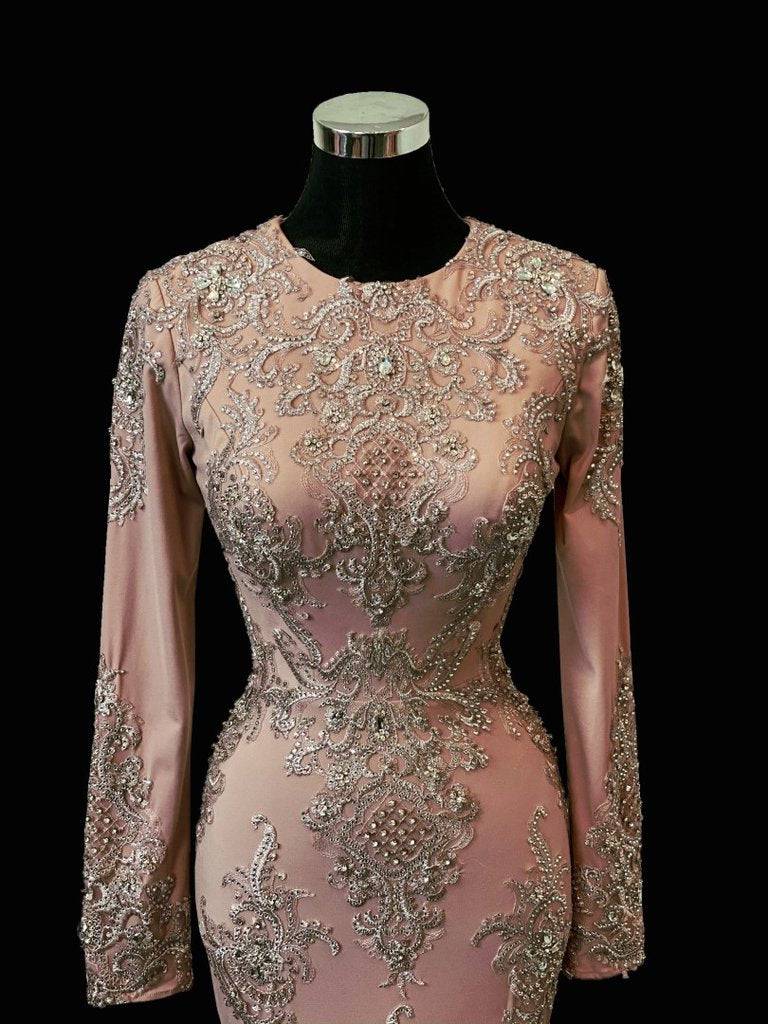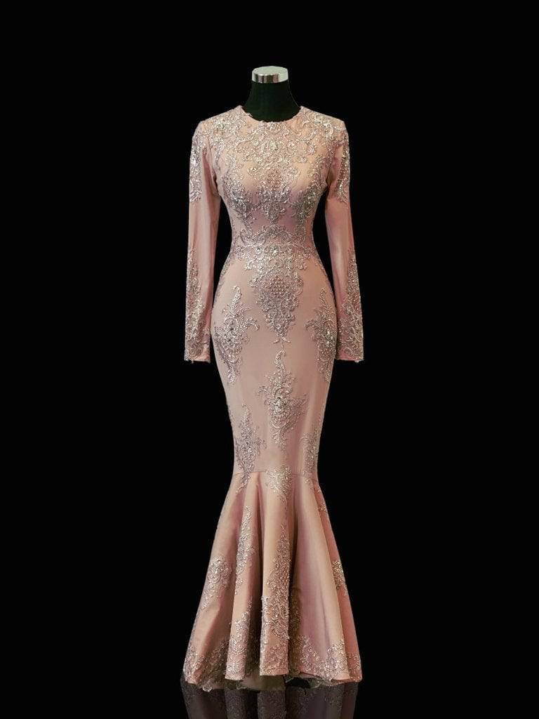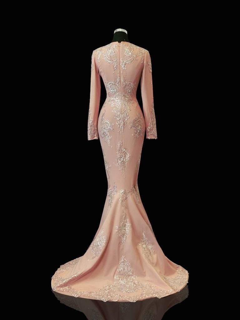 Portia & Scarlett PS21224 glittering with beads stone long sleeve long dress.