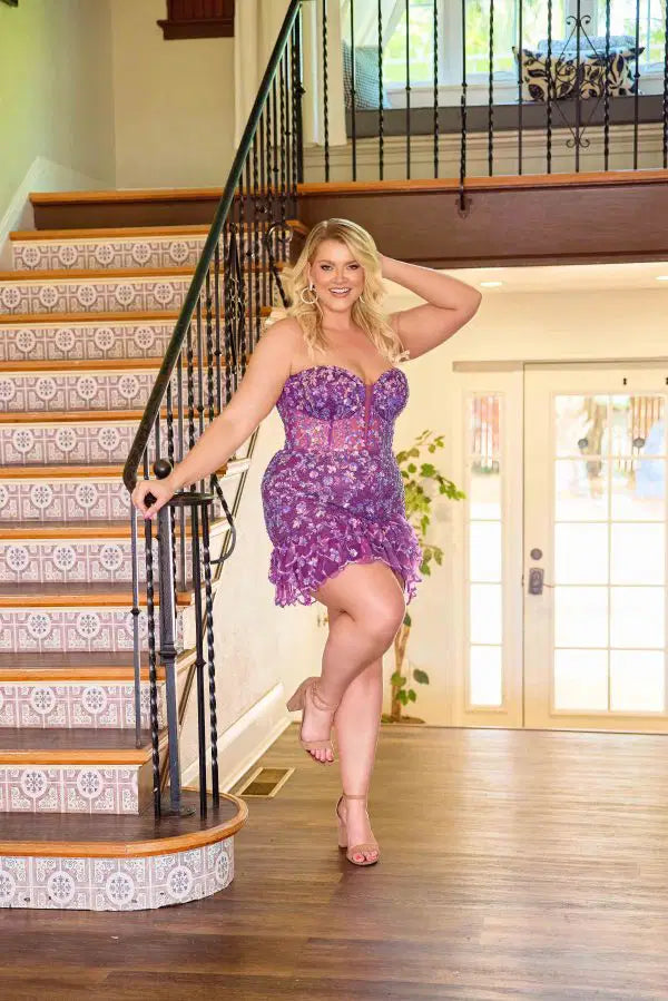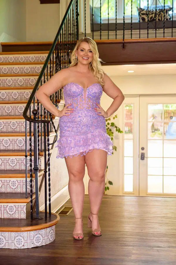 Elevate your style with the Primavera Couture 14089, featuring a sheer corset bodice adorned with delicate floral sequins for a sophisticated shimmer. The strapless design enhances your silhouette, while the scallop tiered hem adds a refined, layered finish. This piece combines expert craftsmanship with elegant details, perfect for making a memorable statement at any special occasion.