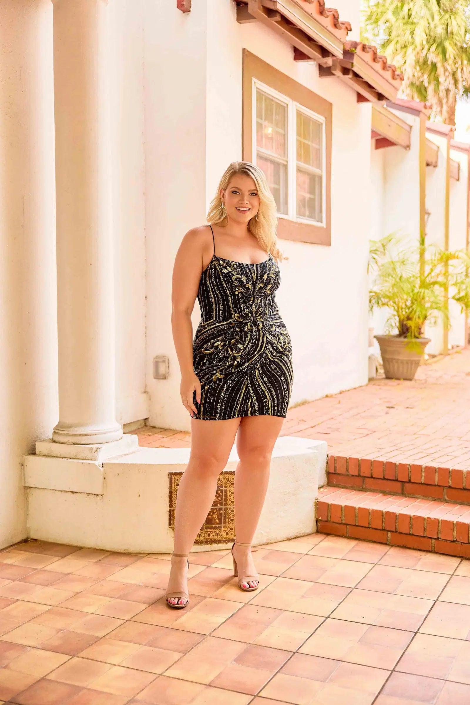 The Primavera Couture 14093 dress features a fitted silhouette that enhances your natural shape. Adorned with an intricate sequin and beaded pattern, it offers refined elegance and texture. Thin straps provide delicate support, while the open lace-up back adds a sophisticated and adjustable design element, ensuring a perfect fit with a striking visual appeal. Ideal for formal occasions where detail and craftsmanship matter.