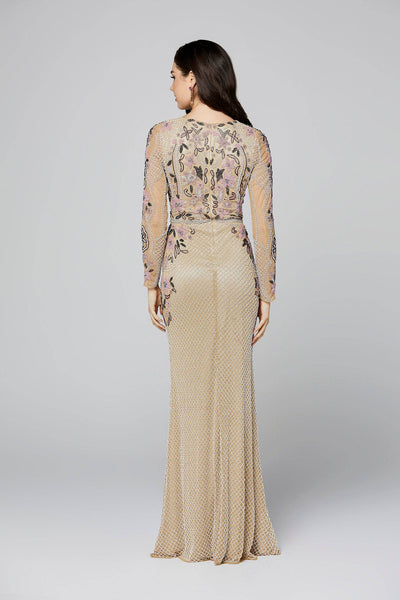 Primavera Couture 3481 Midnight Beaded Long Sleeve Jewel Neck Fitted Dress. Also available in: Beige.