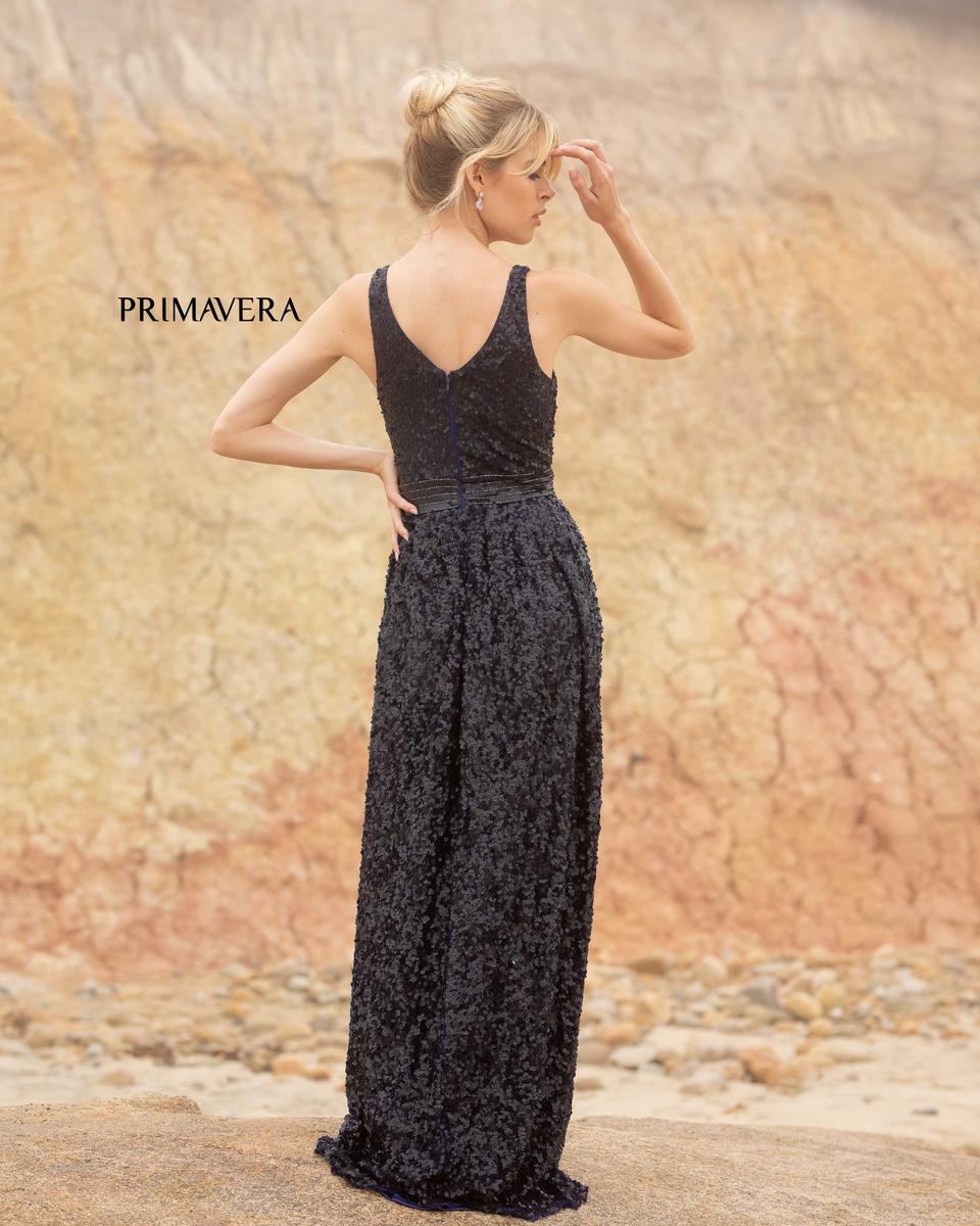 Primavera Couture 3795 This dress is adorned in sequin embellishments to make you shine all night long. The dress is designed in a wrapped V-neckline following ruched details on the waistline making it appear slimmer.