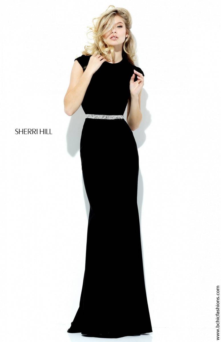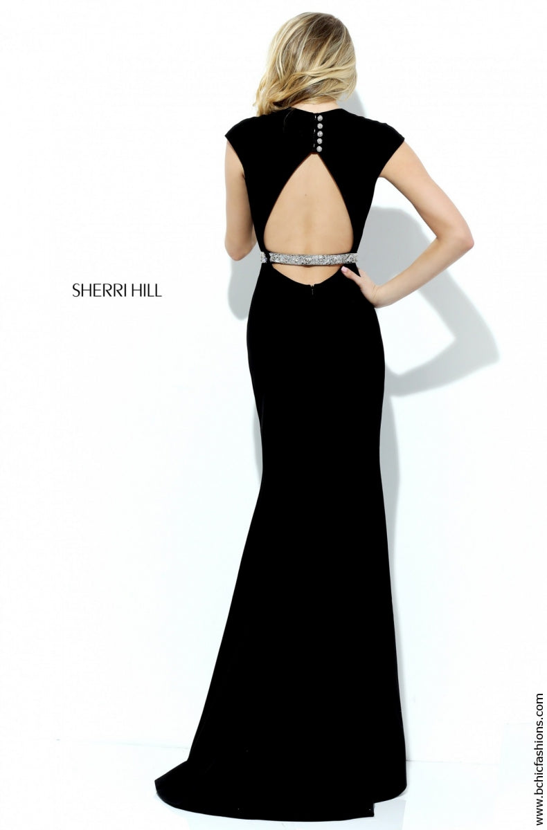 Make a statement in the Sherri Hill 50646 dress. This captivating black mermaid dress features a fitted silhouette with cap sleeves and an open back for a sleek and glamorous look. Perfect for the stylish woman looking to make a lasting impression.