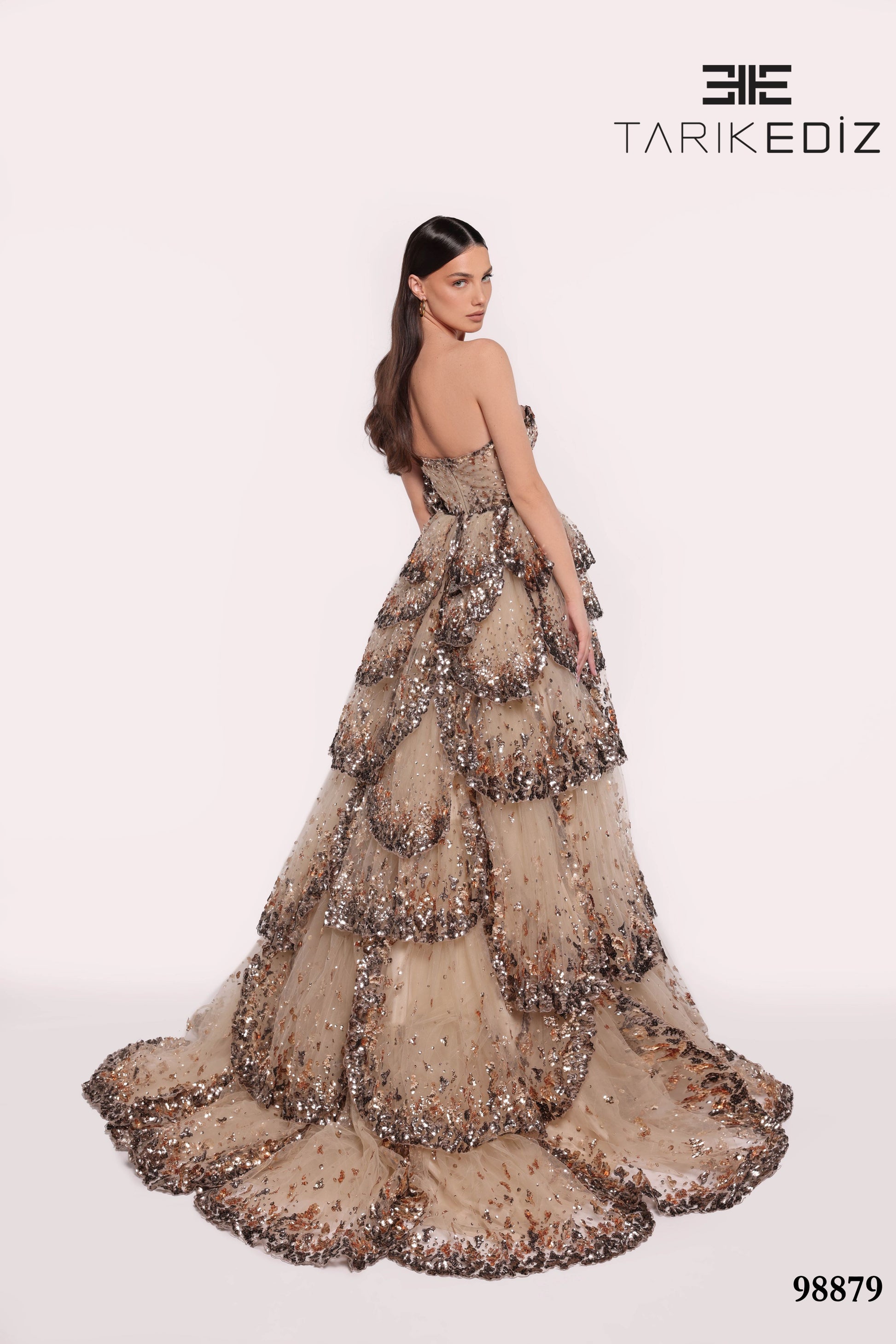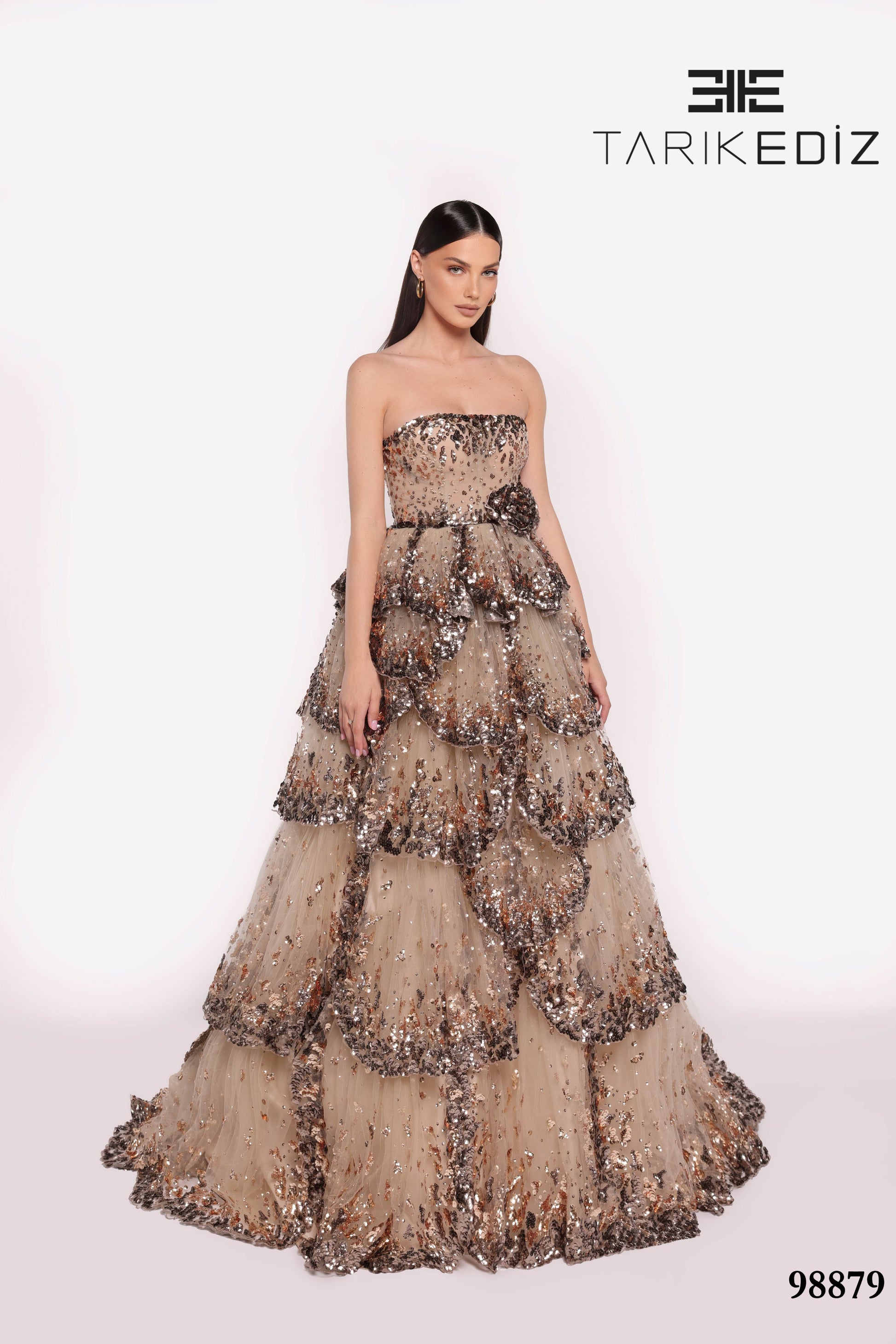 A stunning choice for any formal occasion, the Tarik Ediz 98879 dress features a beautifully sequined strapless design with a square neckline. Its long length adds an elegant touch, making it the perfect dress to make a statement. Feel confident and glamorous in this sophisticated and timeless piece.