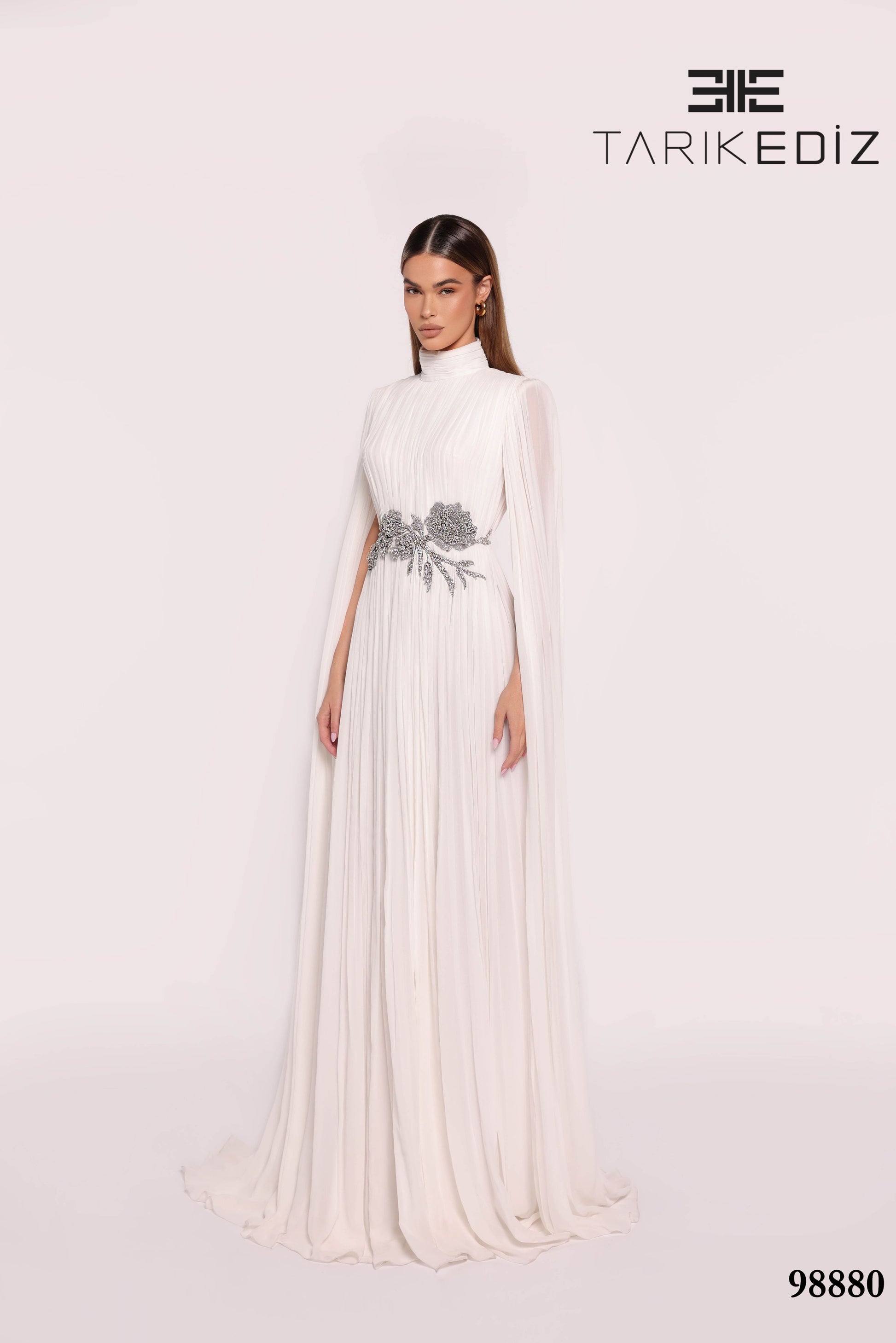 This chiffon long sleeve high neckline long dress by Tarik Ediz 98880 is a stylish and elegant choice for any formal occasion. Made from luxurious chiffon material, the dress features long sleeves and a high neckline for a sophisticated look. Perfect for those who want to make a statement while remaining comfortable and stylish.