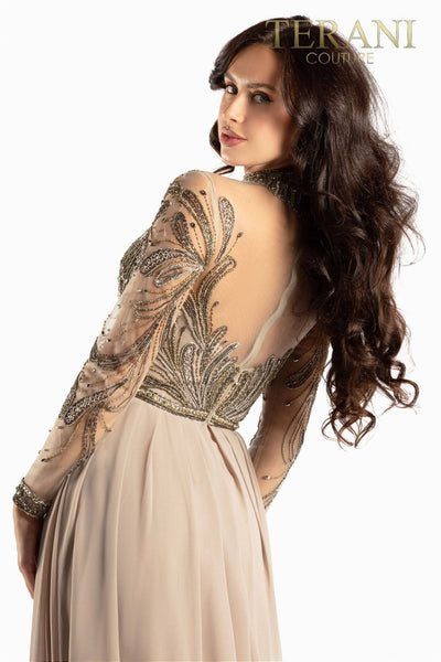 Terani Couture 2011M2126 This jewlery beaded neckline marrys bodice beads all paired with a softly pleated Chiffon skirt.